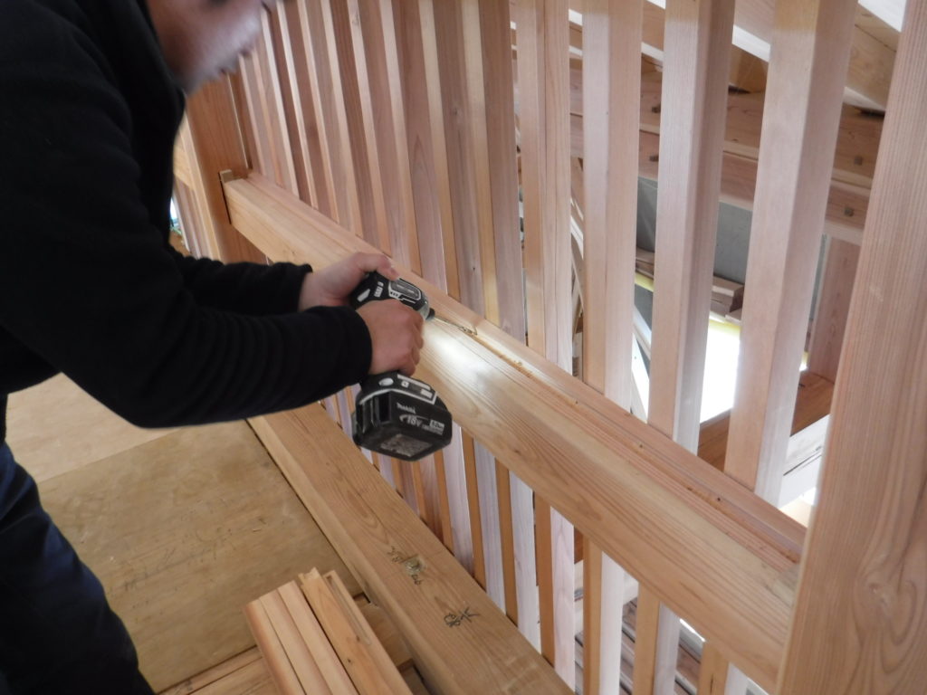 下穴より格子の通りを確認してビス止めします