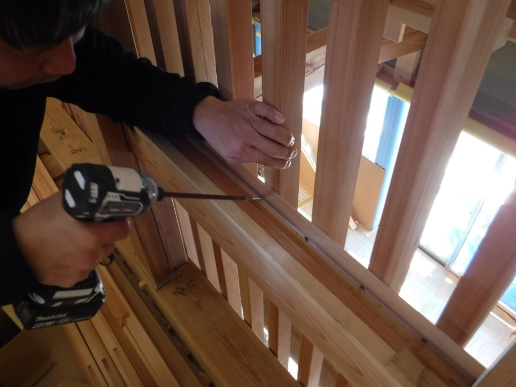 裏側中桟には溝があります。下穴を開けてビス止めします