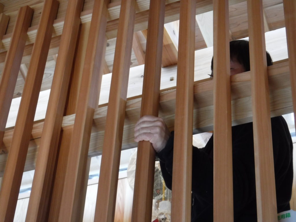 格子をホゾ部分に差し込みます